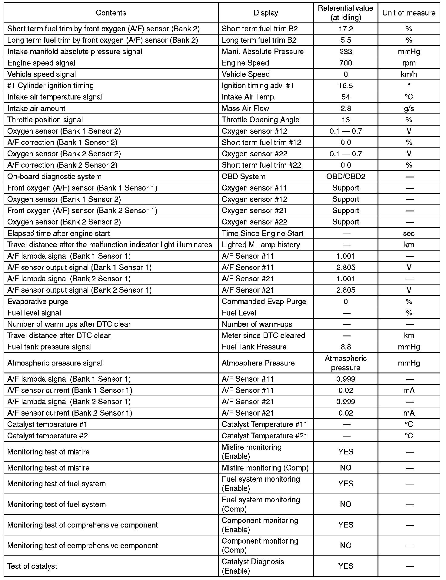 3. READ CURRENT DATA FOR ENGINE (OBD MODE)
