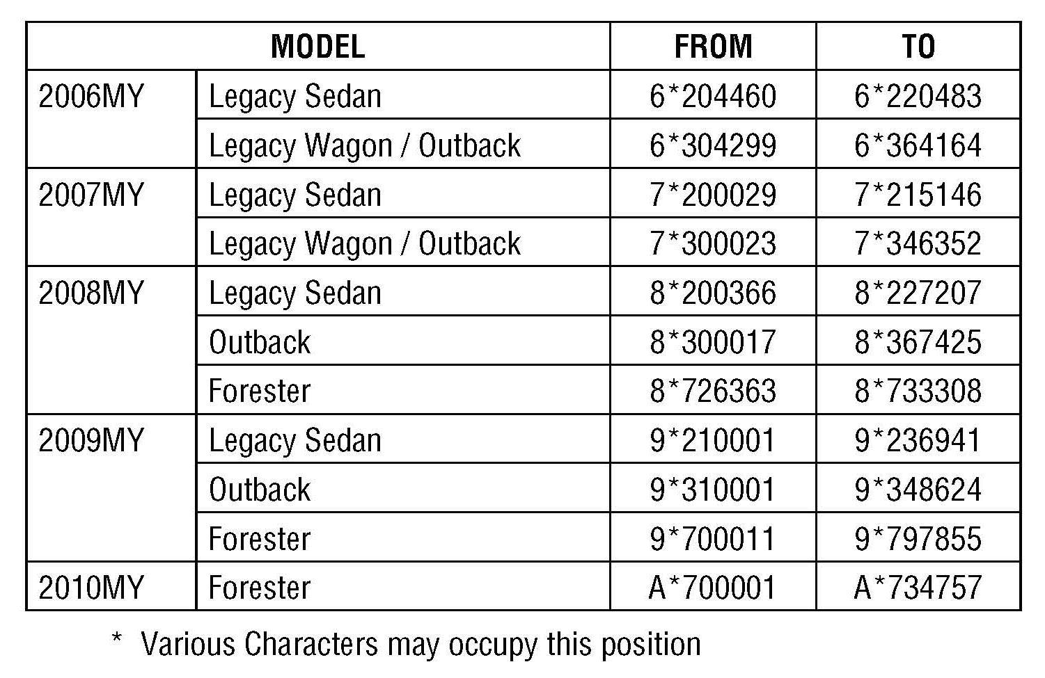^ Affected vehicles are identified in the VIN range chart. NOTE: Prior to performing repairs, confirm coverage for potentially affected vehicles by using the Vehicle Coverage Inquiry function at the website.