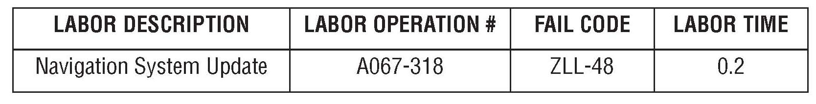 If you encounter a customer complaint with any of the three issues listed, there is a Navigation Program (software only) Update Disc now available to correct the symptoms. This update is for the operating system only and does not update the map data in any way.