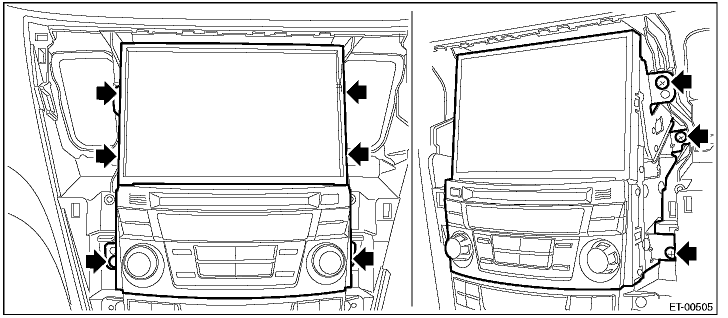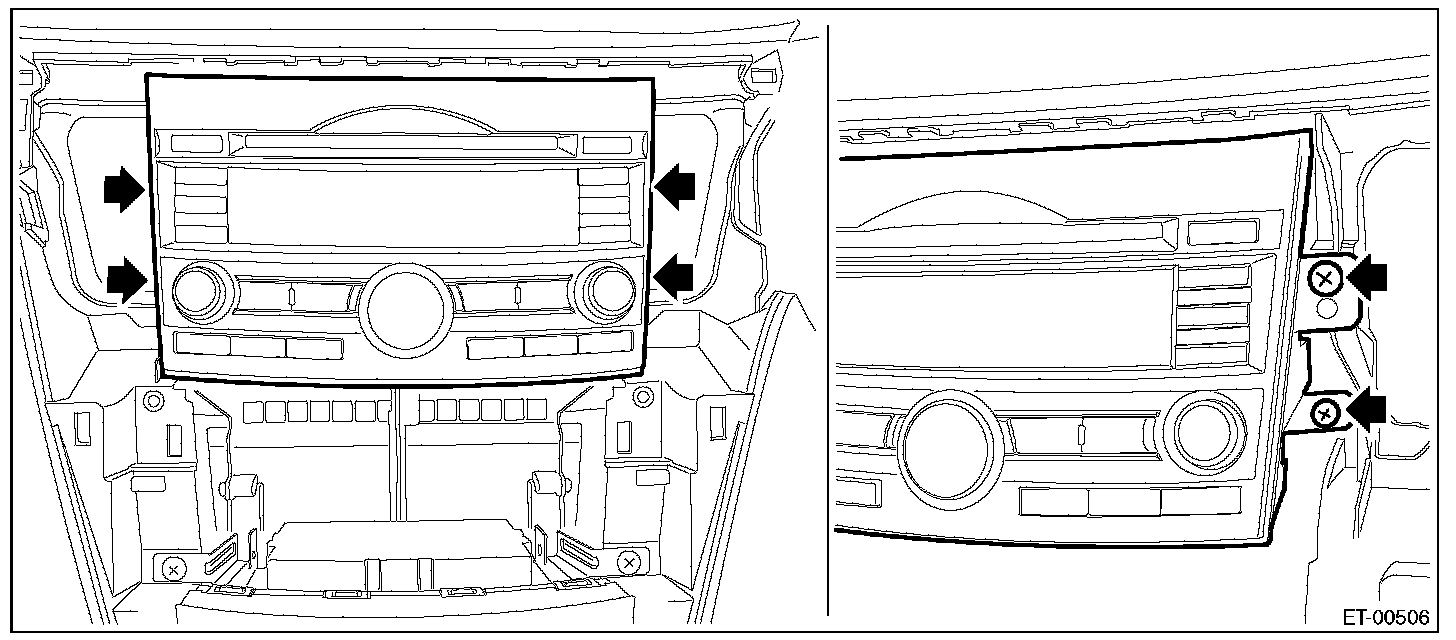 1. Remove the left and right screws, and partially pull the audio out from center console.
