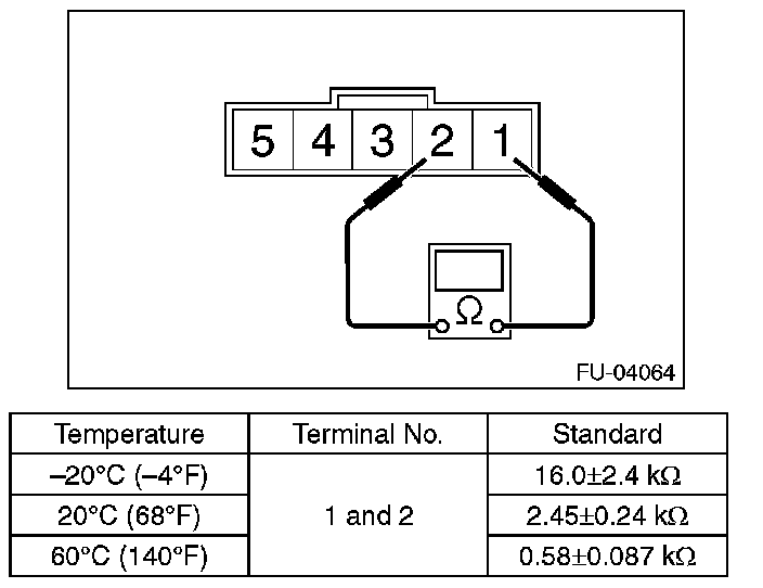 Measure the resistance between intake air temperature sensor terminals.