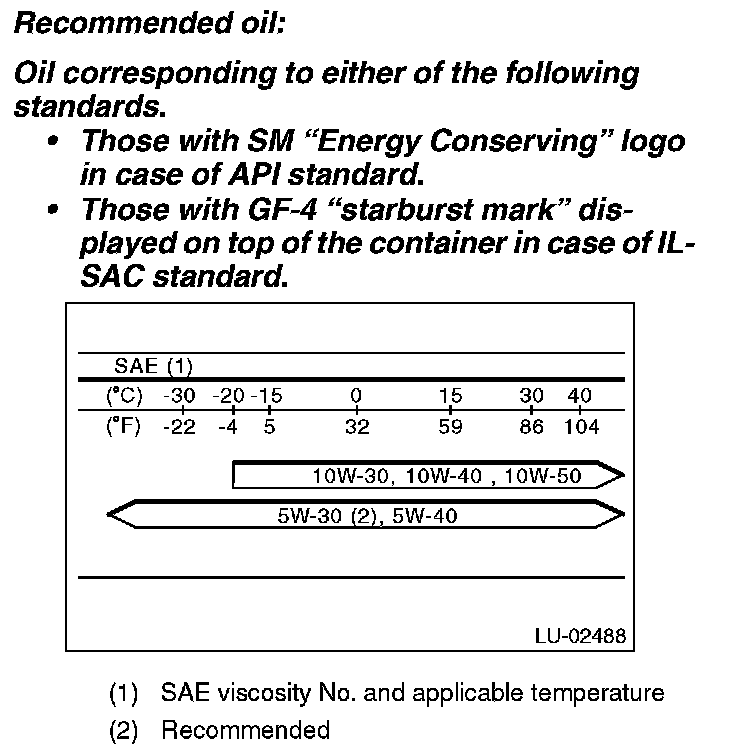 ^ If the vehicle is used in regions of high temperatures or in other severe environments, use oil with the viscosities shown below.