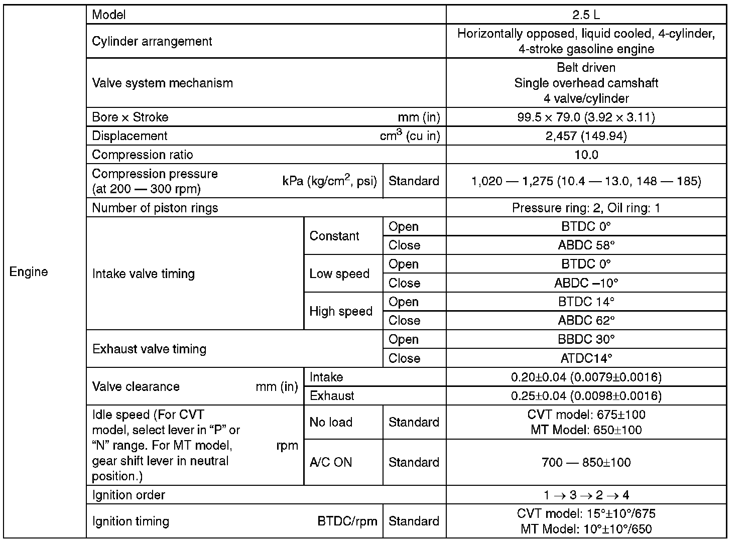 Outback F4-2.5L SOHC