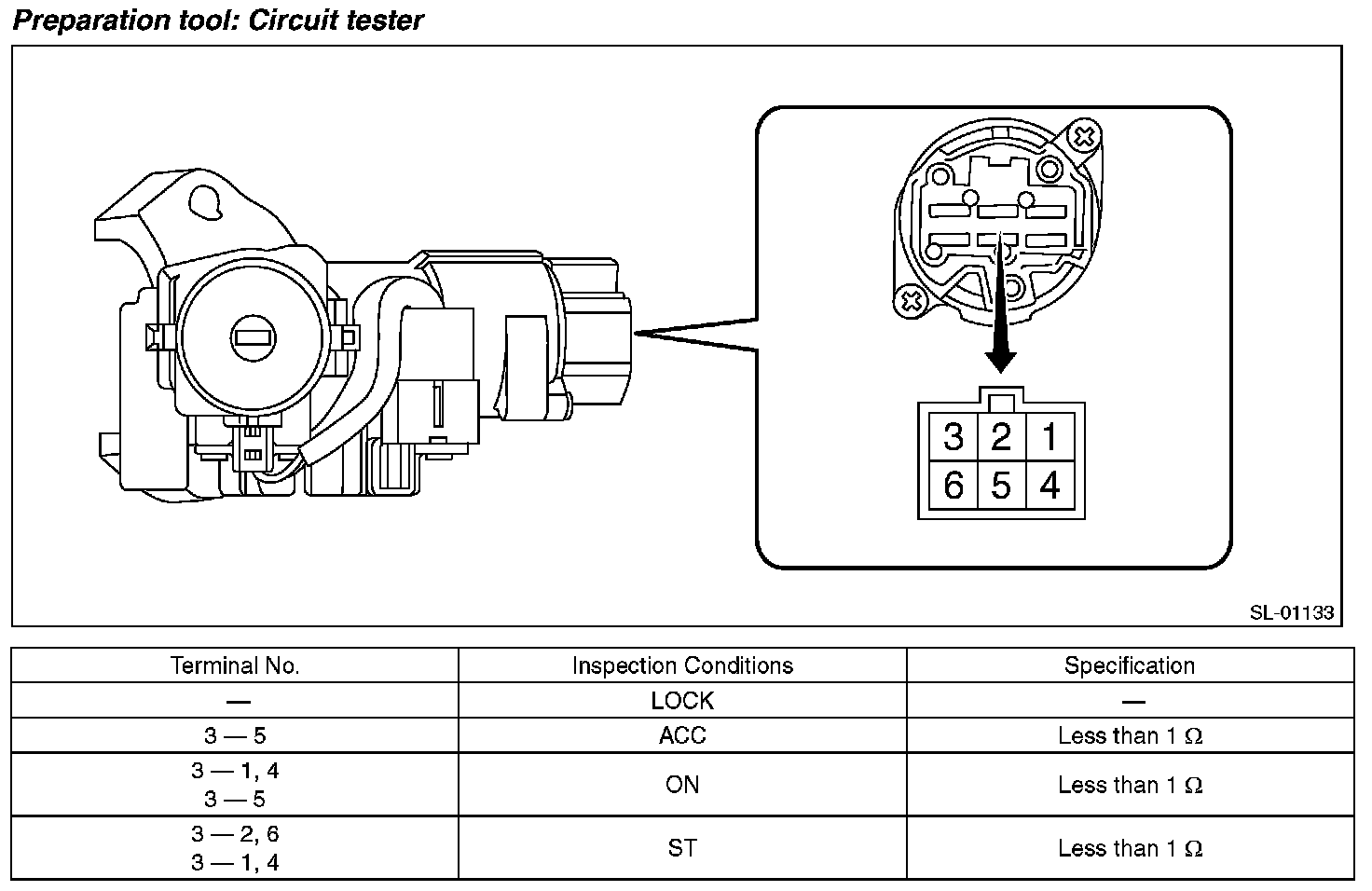 3. Replace the ignition switch if the inspection result is not within the standard value.