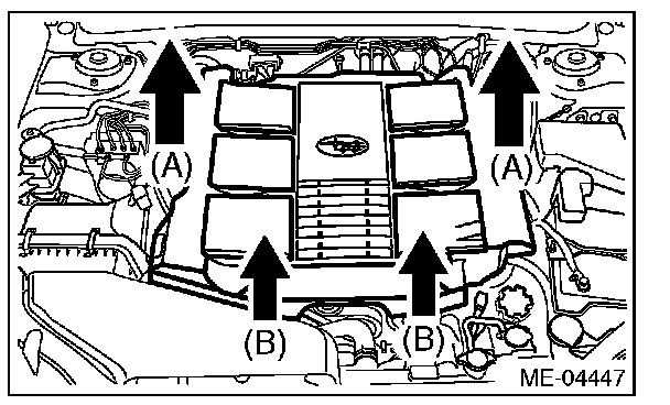 2. Lift up the front side holding two positions (B) while moving it in the forward direction of the vehicle.