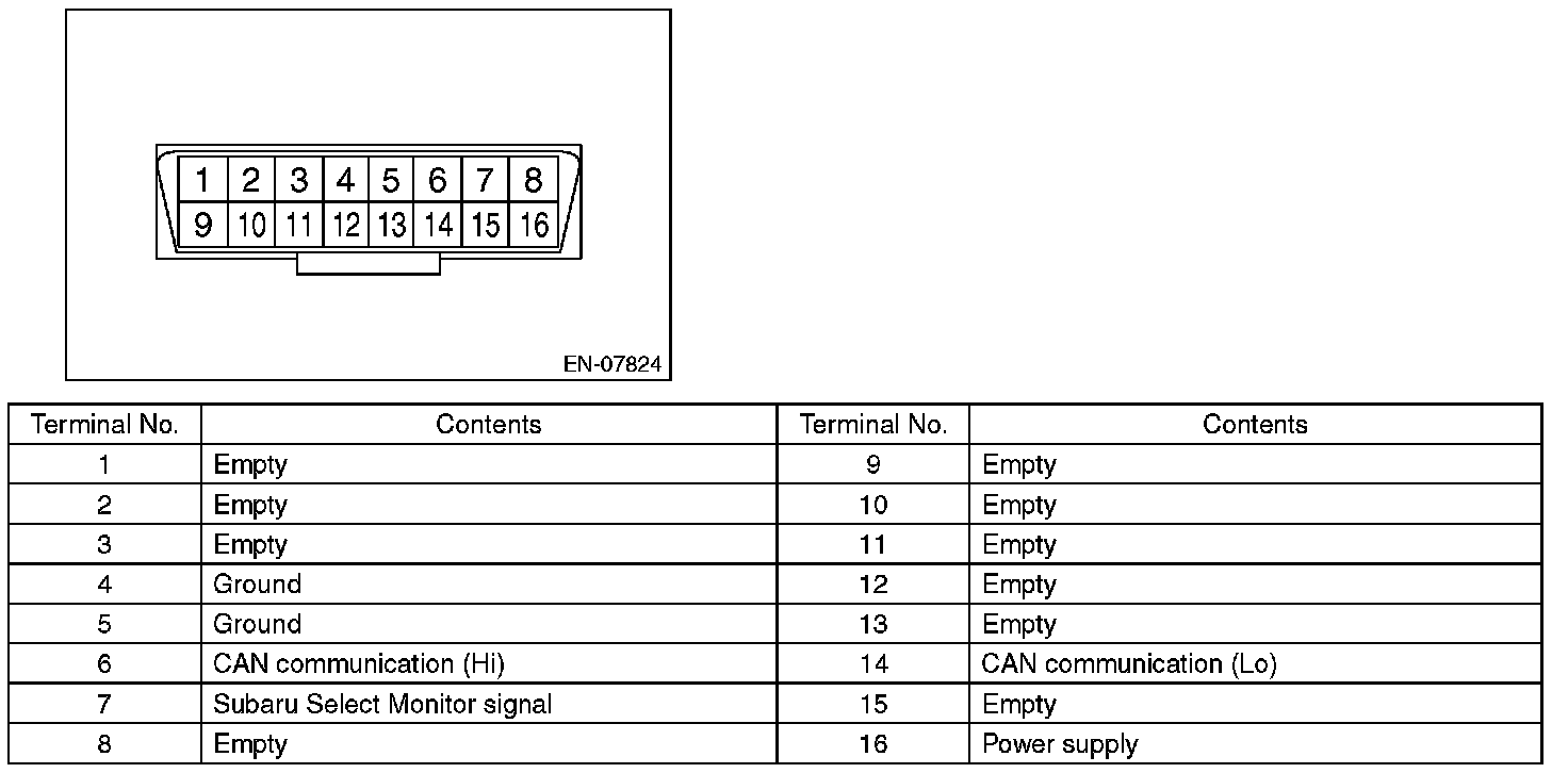 CAUTION: Do not connect any scan tools other than Subaru Select Monitor or general scan tool because the circuit for Subaru Select Monitor may be damaged.