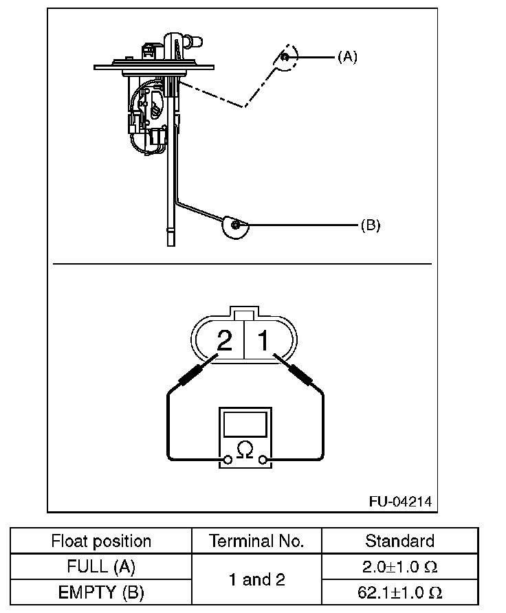 Measure the resistance between fuel sub level sensor terminals.