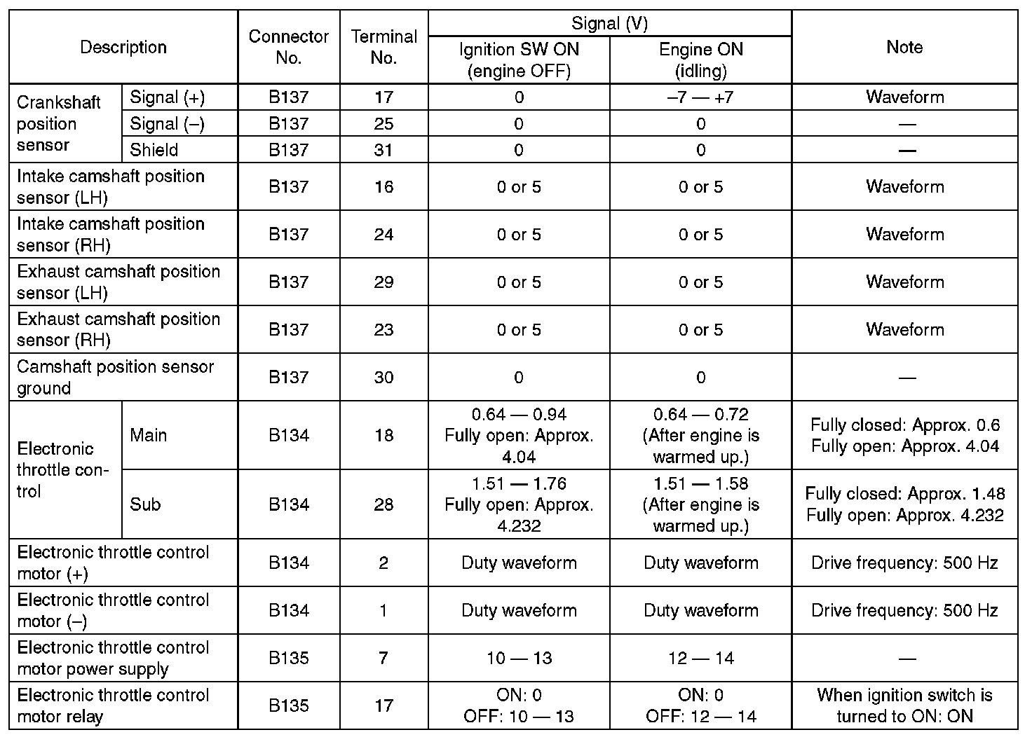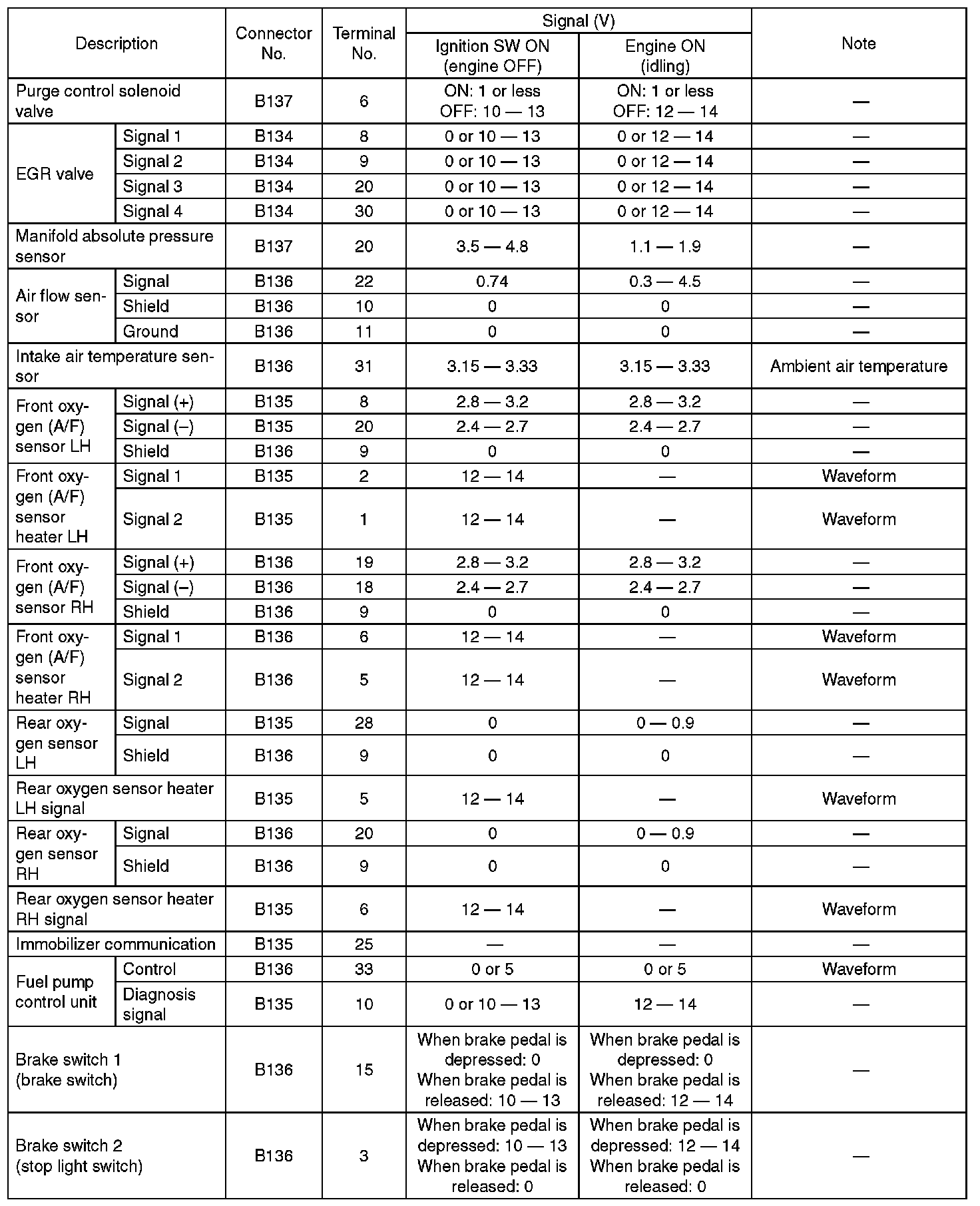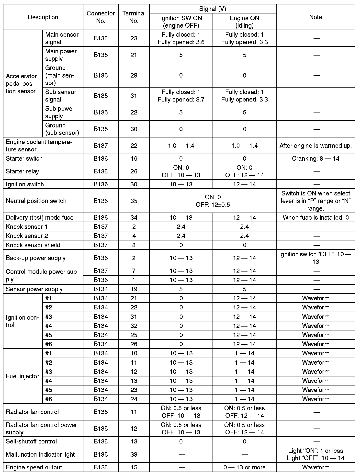 Home >> Subaru >> 2010 >> Outback F6-3.6L DOHC >> Repair and Diagnosis >> Powertrain Management >> Computers and Control Systems >> Relays and Modules - Computers and Control Systems >> Engine Control Module >> Testing and Inspection >> Pinout Values and Diagnostic Parameters