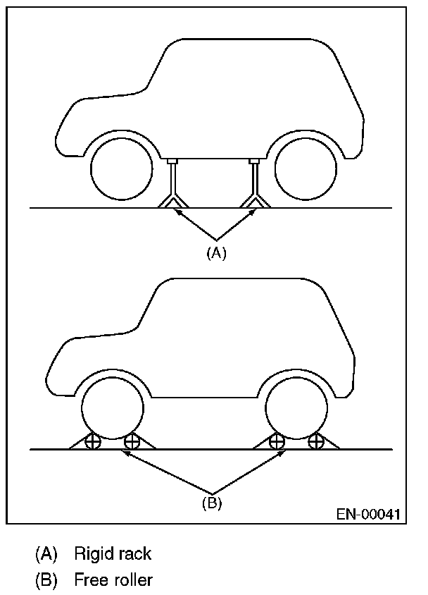 2. Lift up the vehicle using a garage jack and place it on rigid racks, or drive the vehicle onto free rollers.