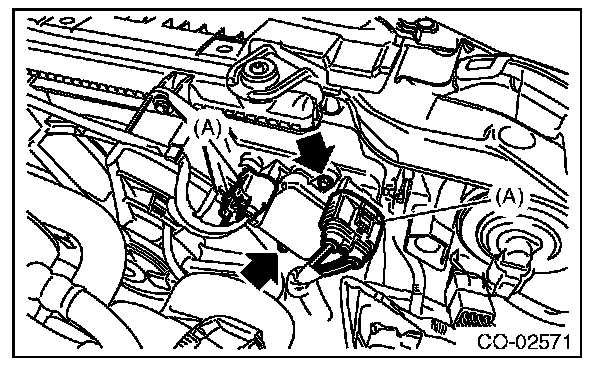 1) Disconnect the connector (A) from the radiator fan control unit.