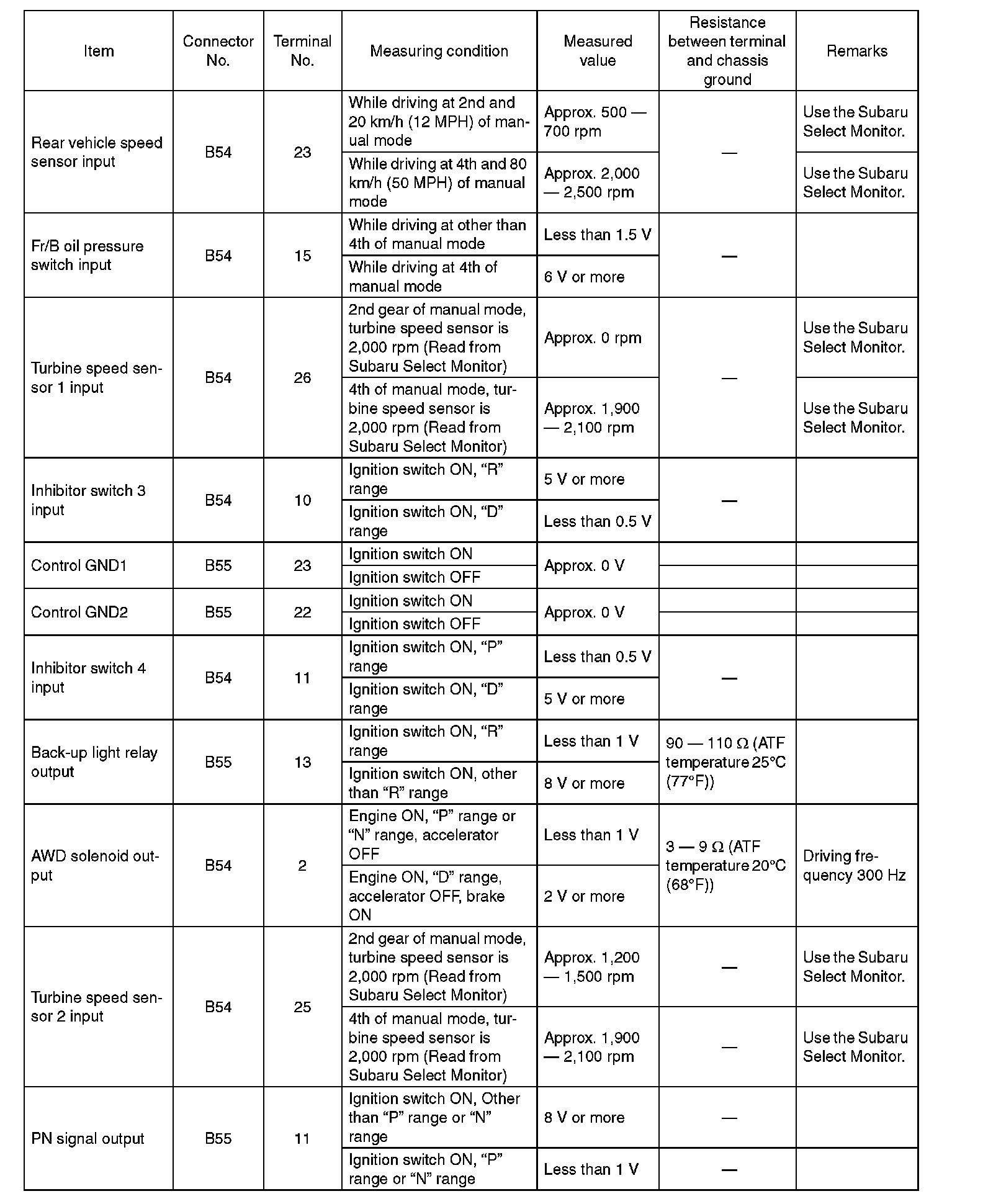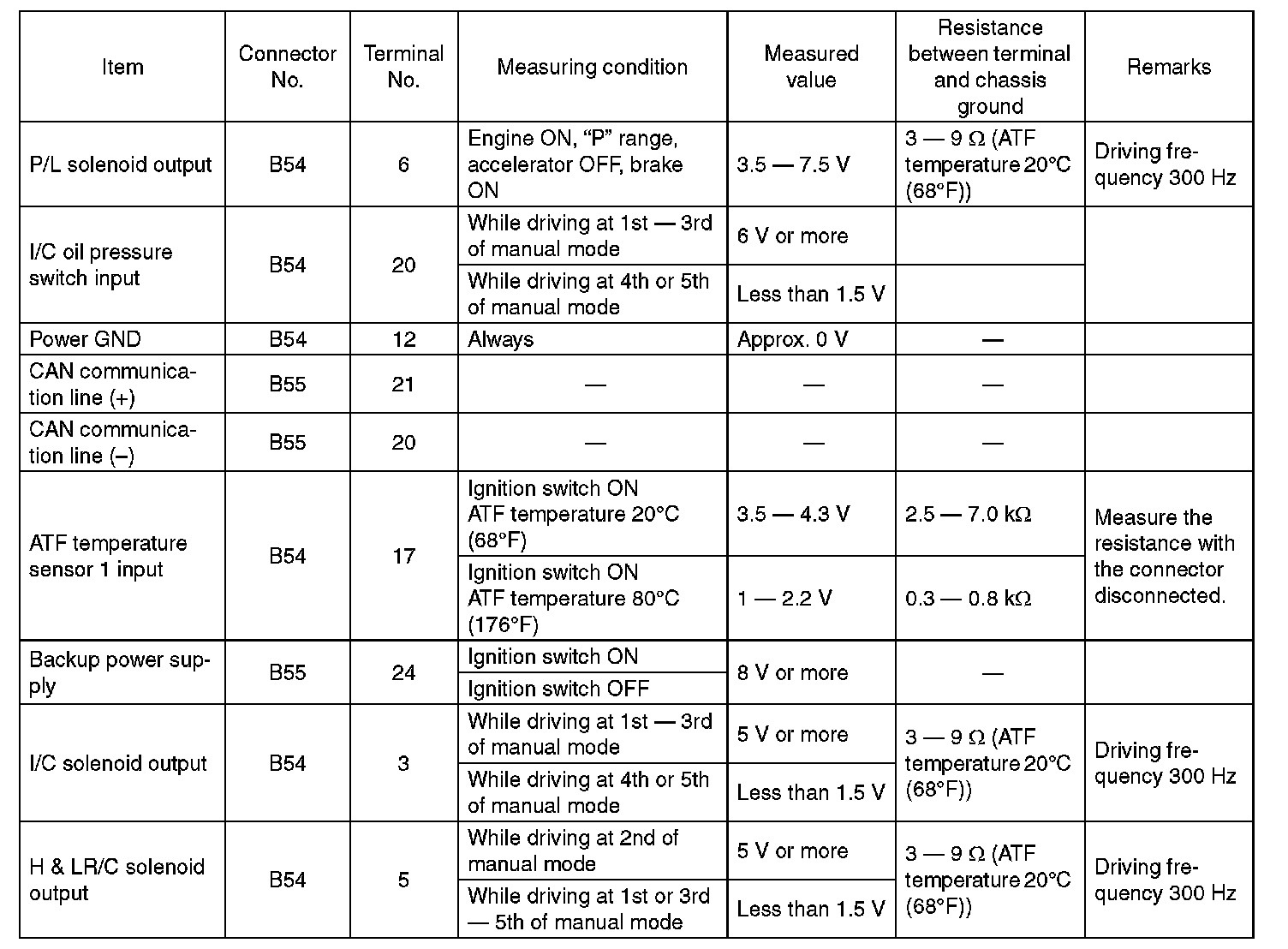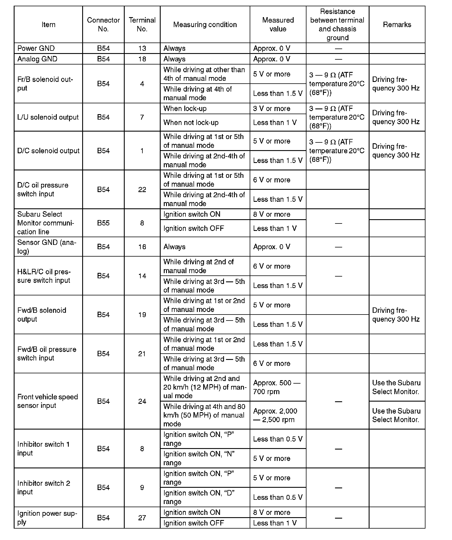 Transmission Control Module (TCM) I/O Signal