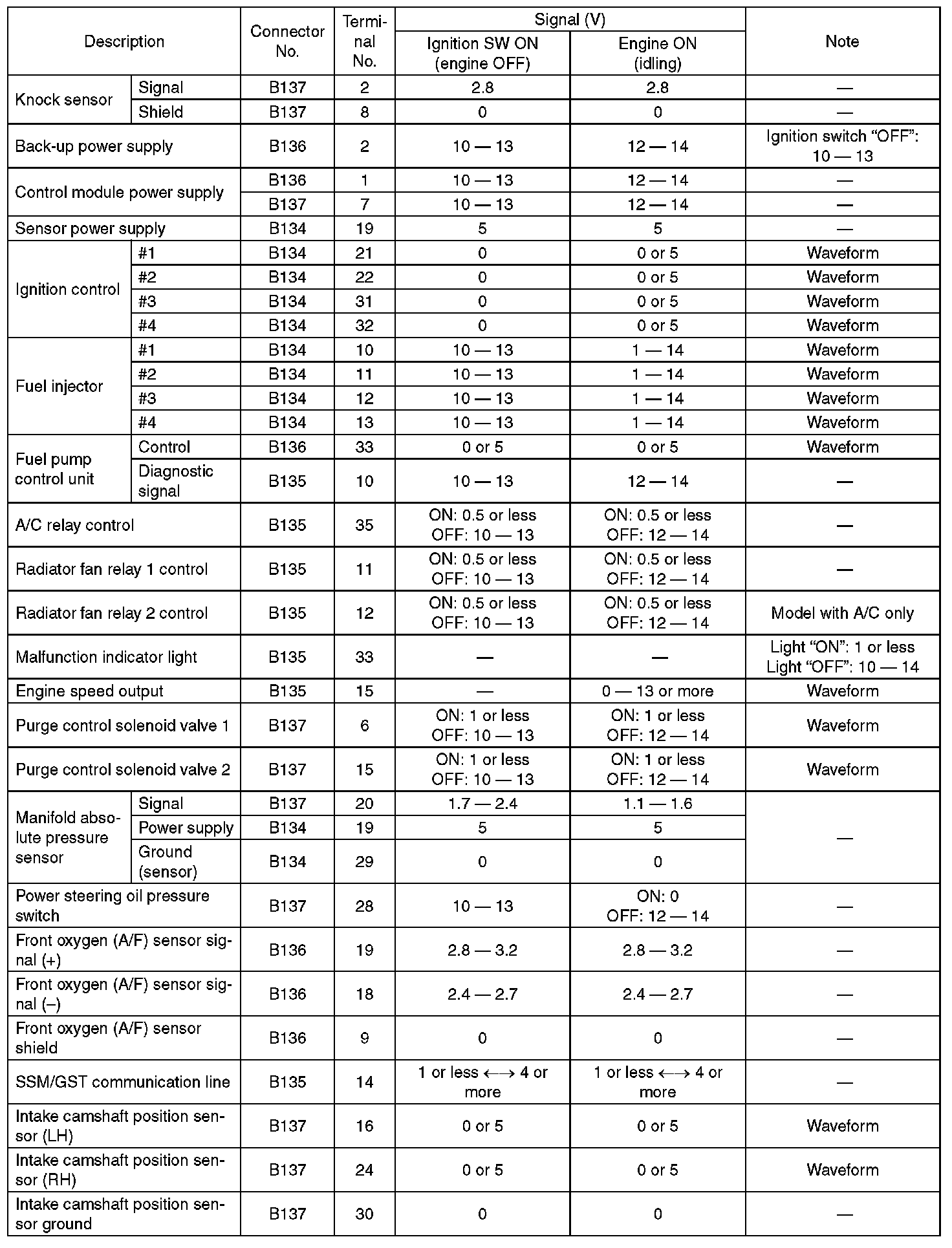 Engine Control Module (ECM) I/O SignalELECTRICAL SPECIFICATION