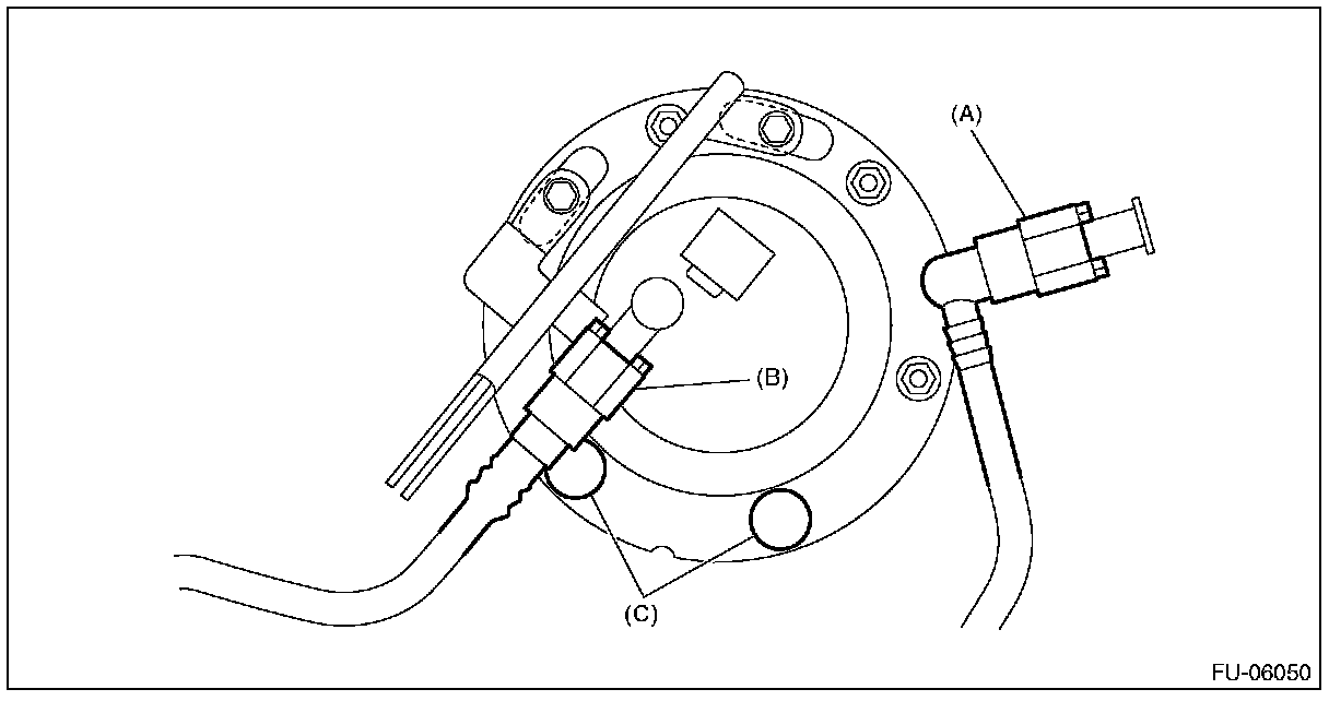 - After tightening, install the rubber cap (C) at the position shown in the figure.