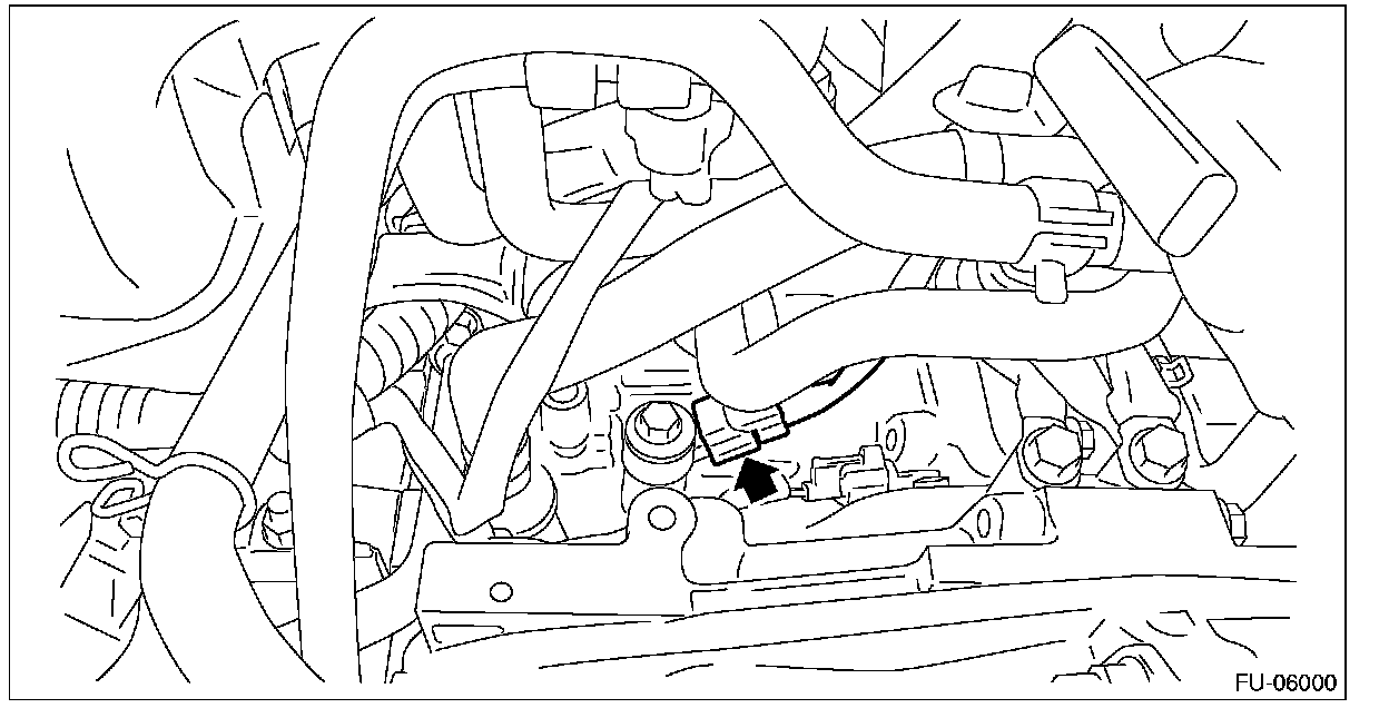 3. Disconnect the connector (A) from the knock sensor, and remove the knock sensor from the cylinder block.