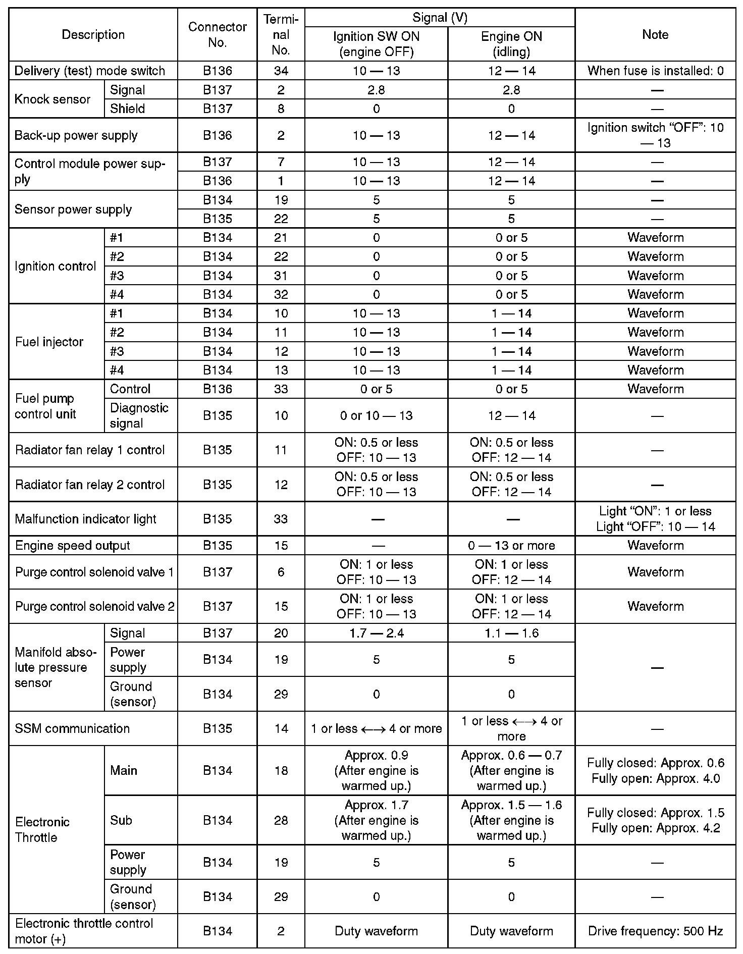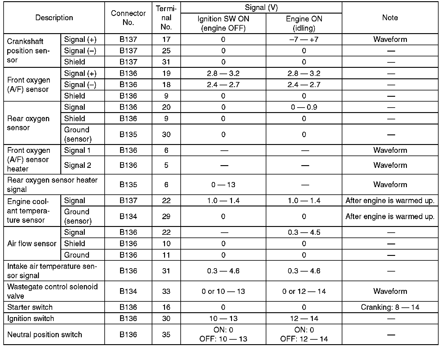 Home >> Subaru >> 2011 >> Legacy F4-2.5L DOHC Turbo >> Repair and Diagnosis >> Powertrain Management >> Computers and Control Systems >> Relays and Modules - Computers and Control Systems >> Engine Control Module >> Testing and Inspection >> Pinout Values and Diagnostic Parameters