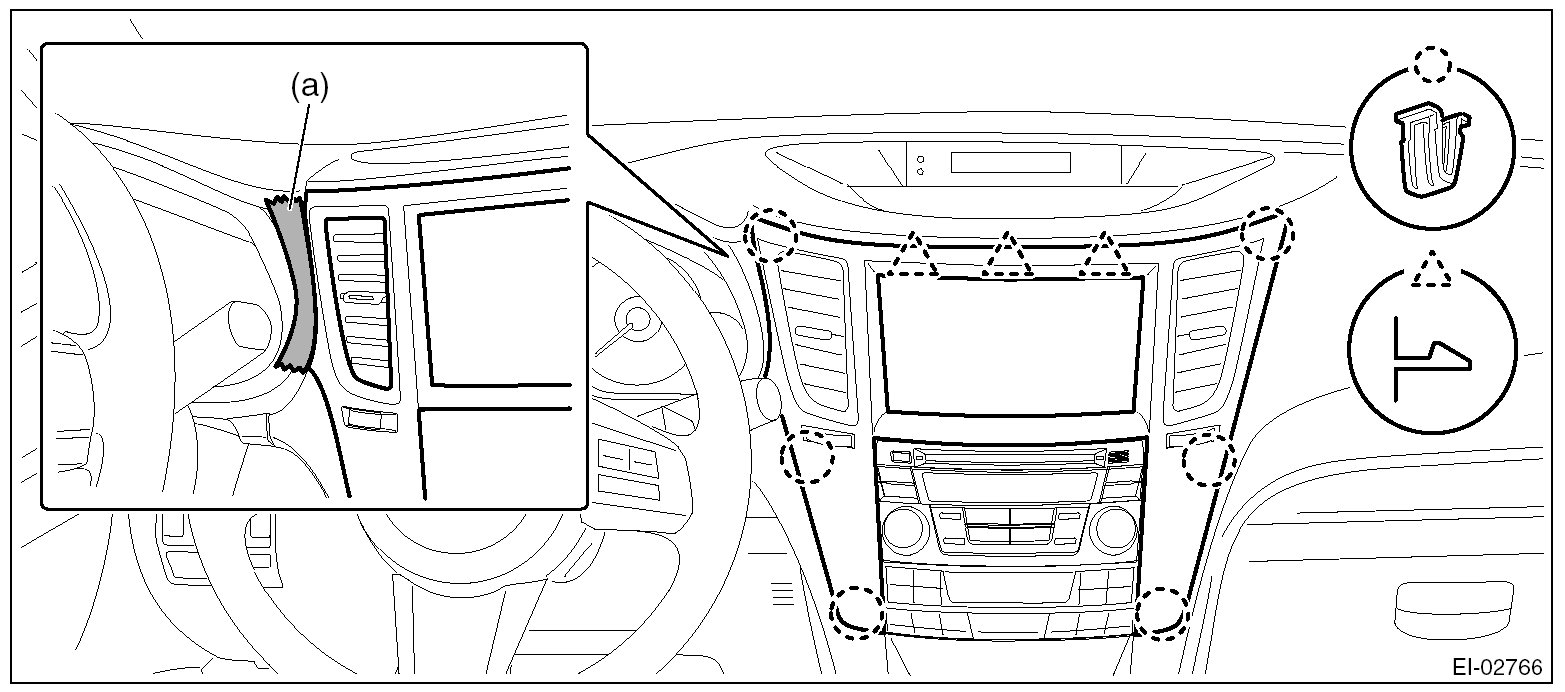 2. Insert a finger into the air vent grille and release the left and right clips at the top of the center panel. (A), (B)