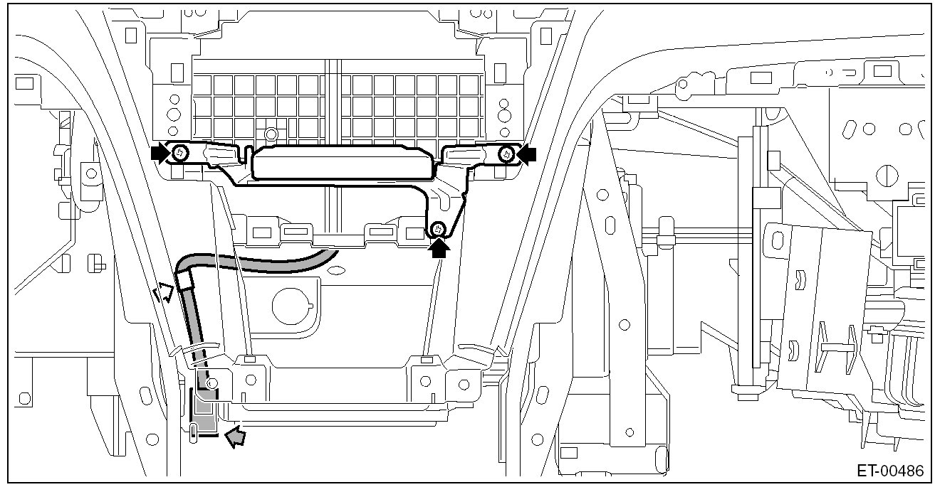 3. Remove the harness clamps, disconnect the connector and remove the XM satellite radio tuner.