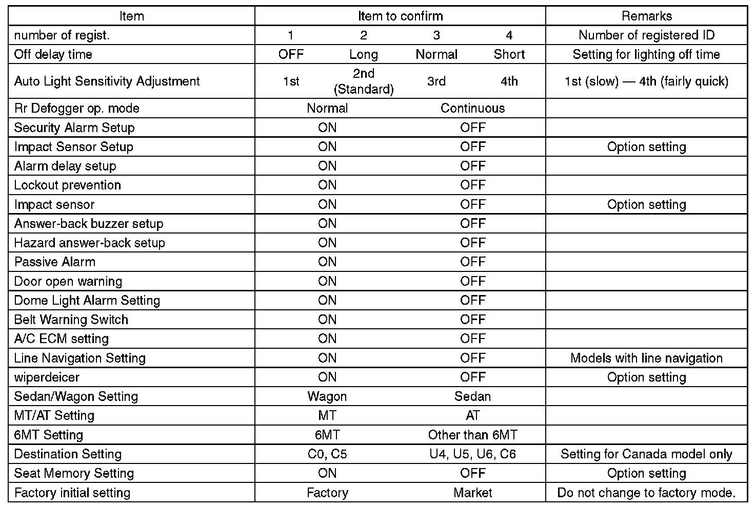 - Be sure not to change Factory initial setting except when installing a new body integrated unit.