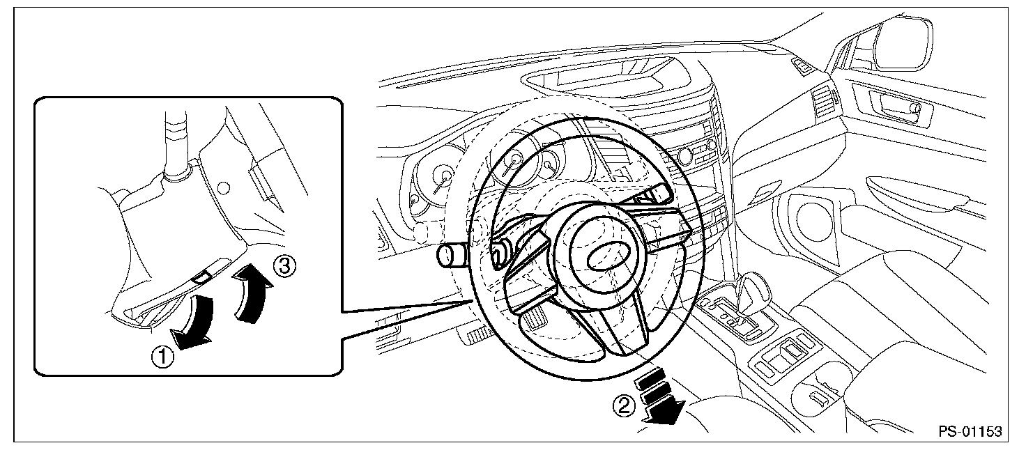 2) Adjust the tilt position of the steering column to the lowest position and lock the tilt lever.