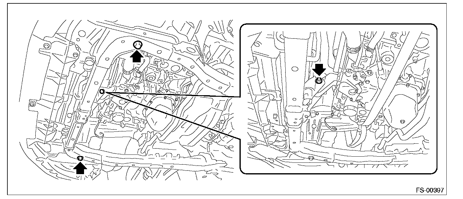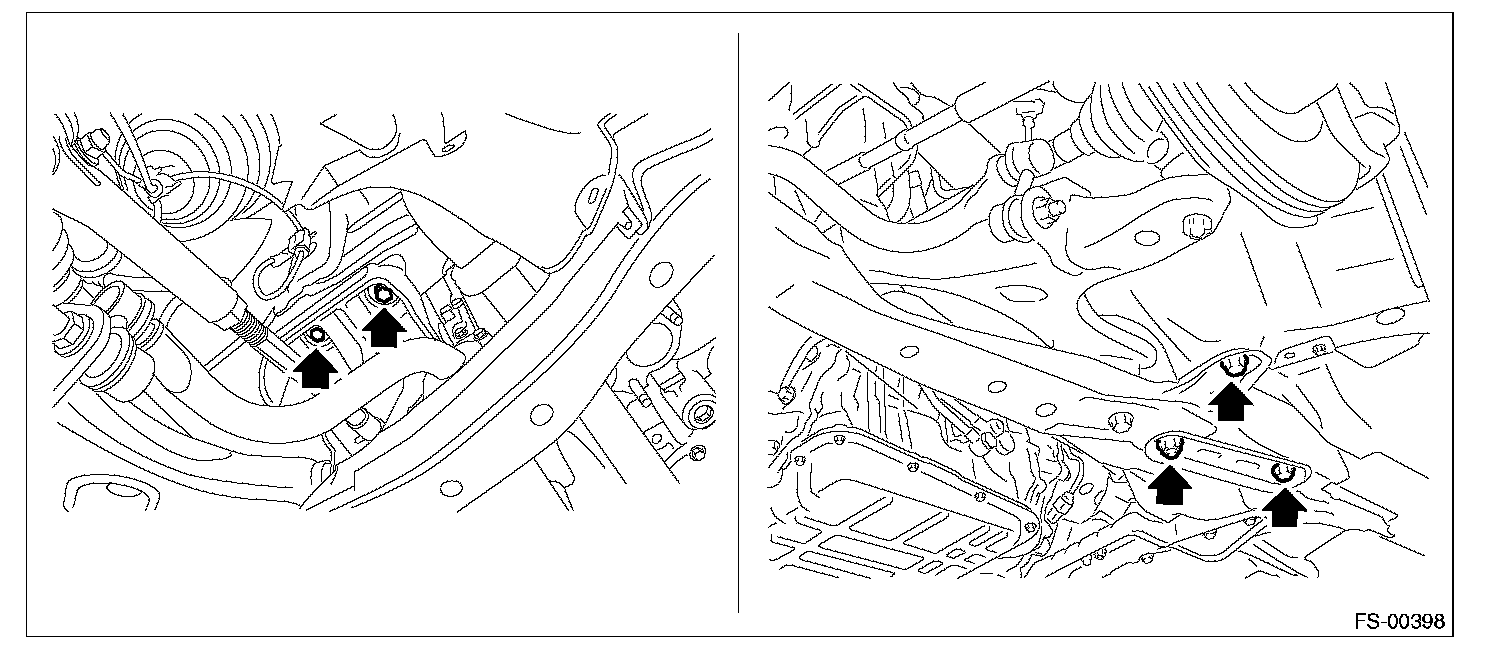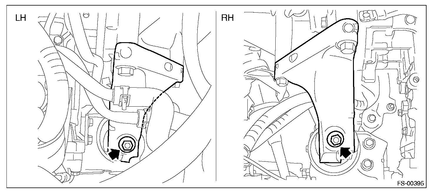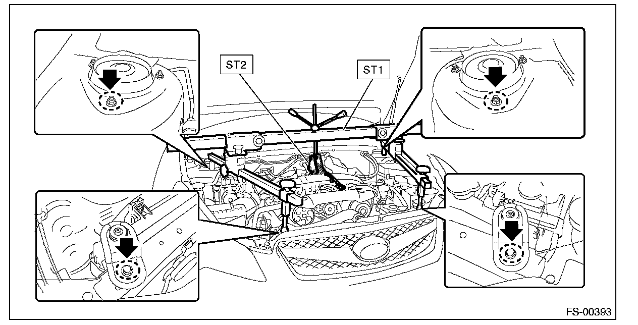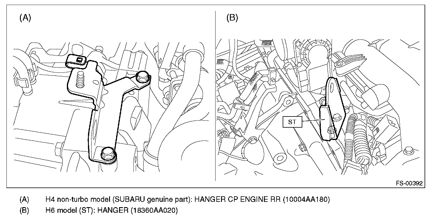 12) Replace the engine hanger installed on the engine with the SUBARU genuine engine hanger (H4 nonturbo model) or ST (H6 model).