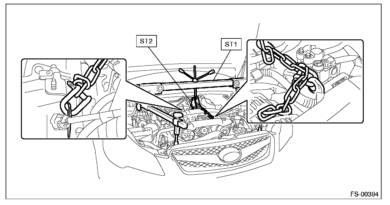 13) Suspend the engine using ST, chain sling, and shackle.