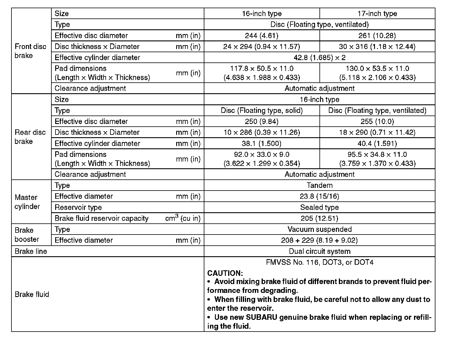 Brakes and Traction Control: Specifications