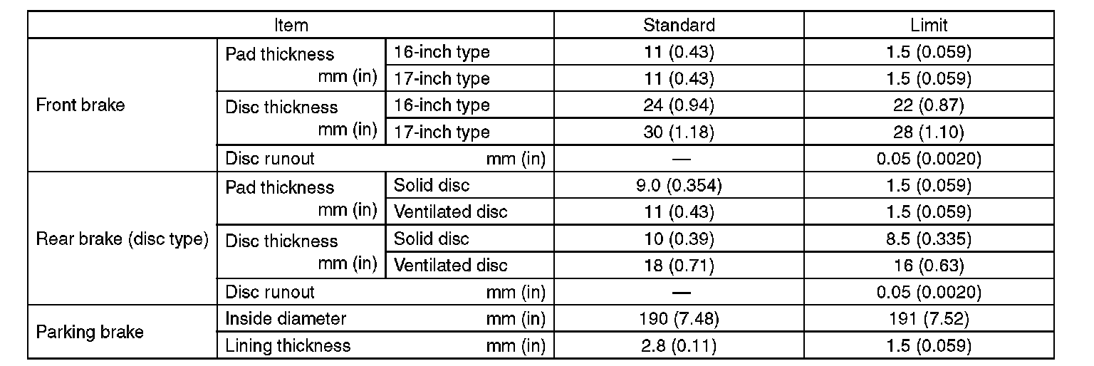 Refer to parking brake specifications.