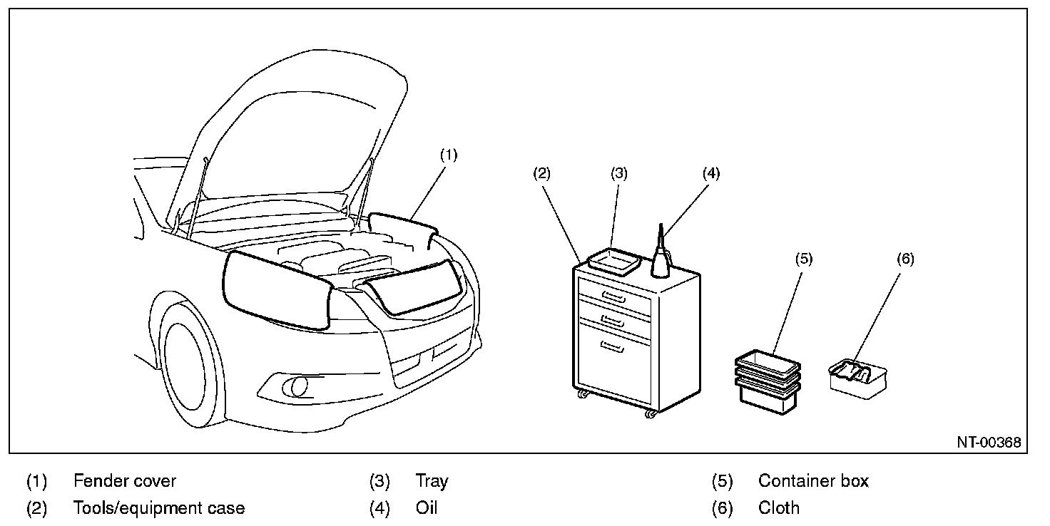 - Before work, cover the vehicle body. (Ex. grille cover, fender cover, seat cover and floor mat cover)