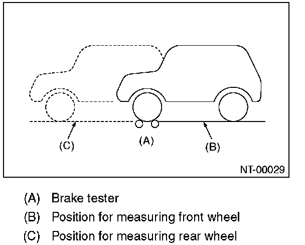 - When measurement is difficult to carry out because both of front wheels are locked, break force measurement in this condition conforms to standard grand total.