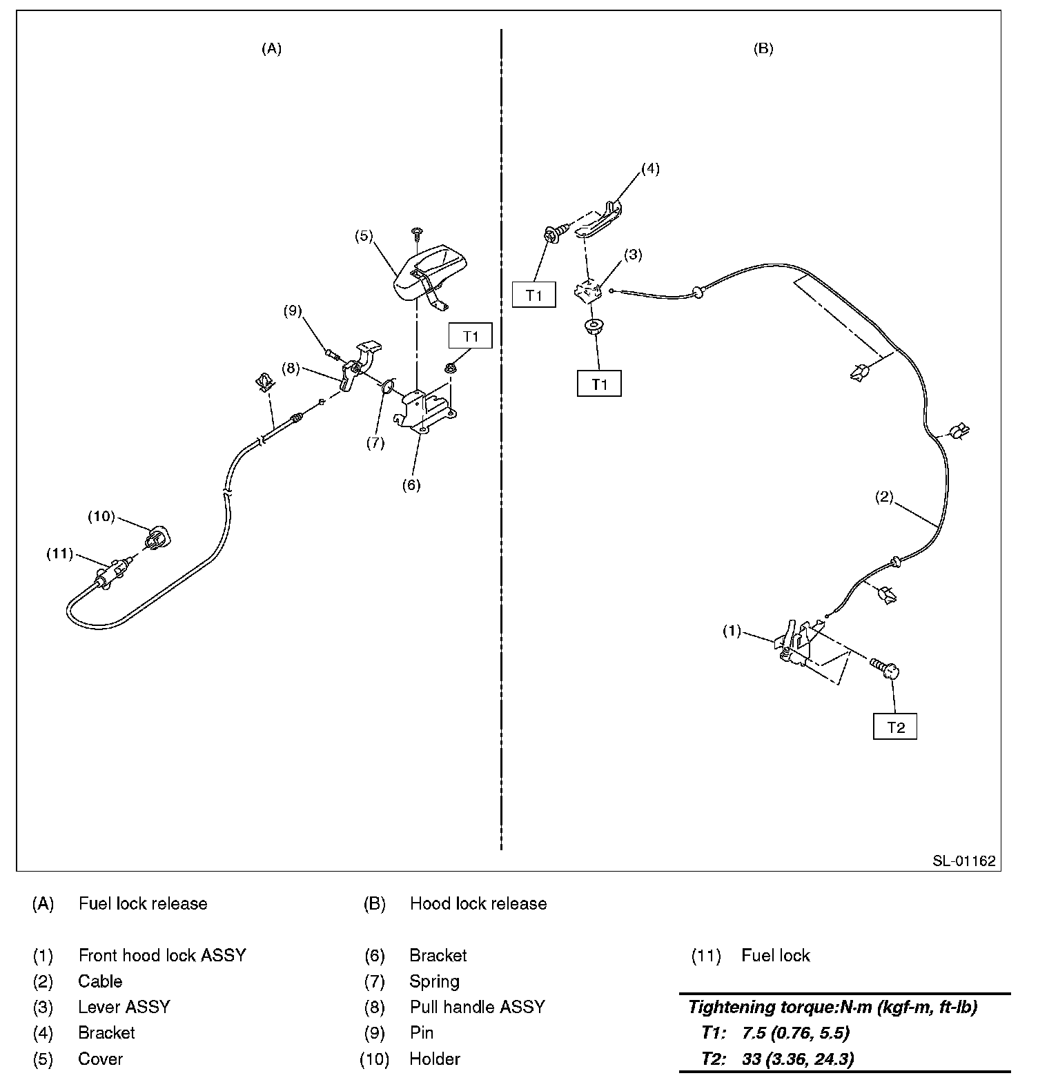 FRONT HOOD LOCK AND REMOTE OPENERS