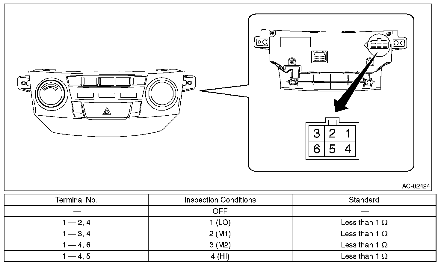 Home >> Subaru >> 2011 >> Outback F4-2.5L SOHC >> Repair and Diagnosis >> Heating and Air Conditioning >> Control Assembly >> Testing and Inspection