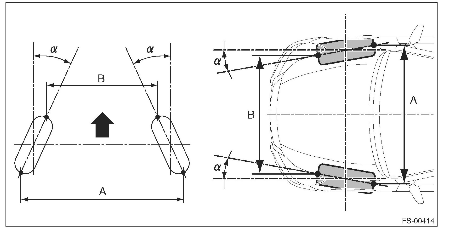 A - B = Positive: Toe-in, Negative: Toe-out