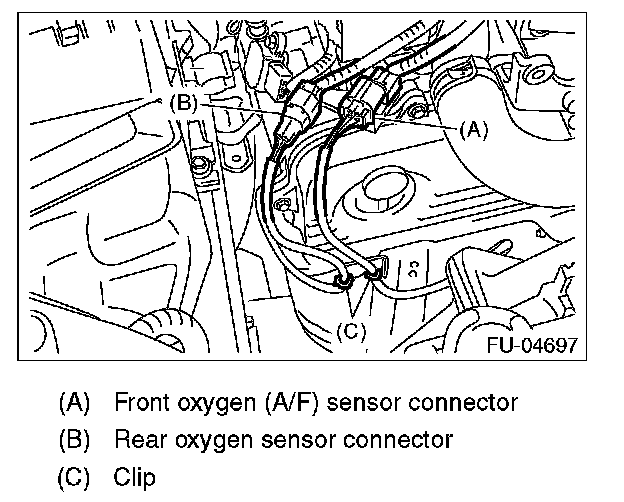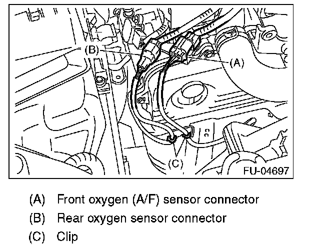 3. Disconnect the rear oxygen sensor connector, and remove the clip holding the rear oxygen sensor harness.
