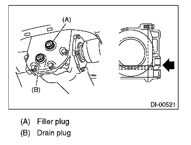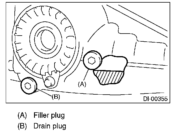 1) Remove the filler plug, and then check the gear oil. Replace the gear oil if it is contaminated, deteriorated or cloudy.