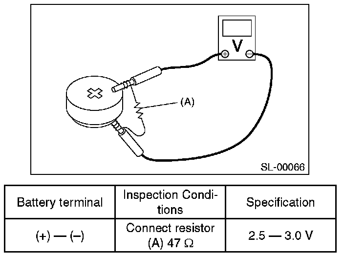 2. Replace the battery if the inspection result is not within the standard value. (Use CR1620 or equivalent.)