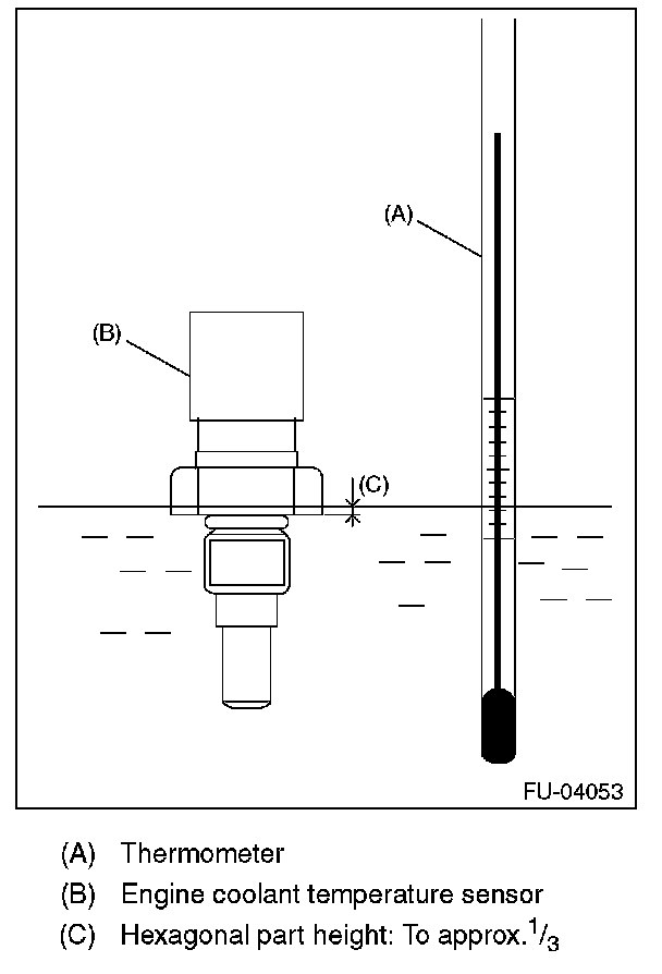 2. Immerse the engine coolant temperature sensor and a thermometer in water.