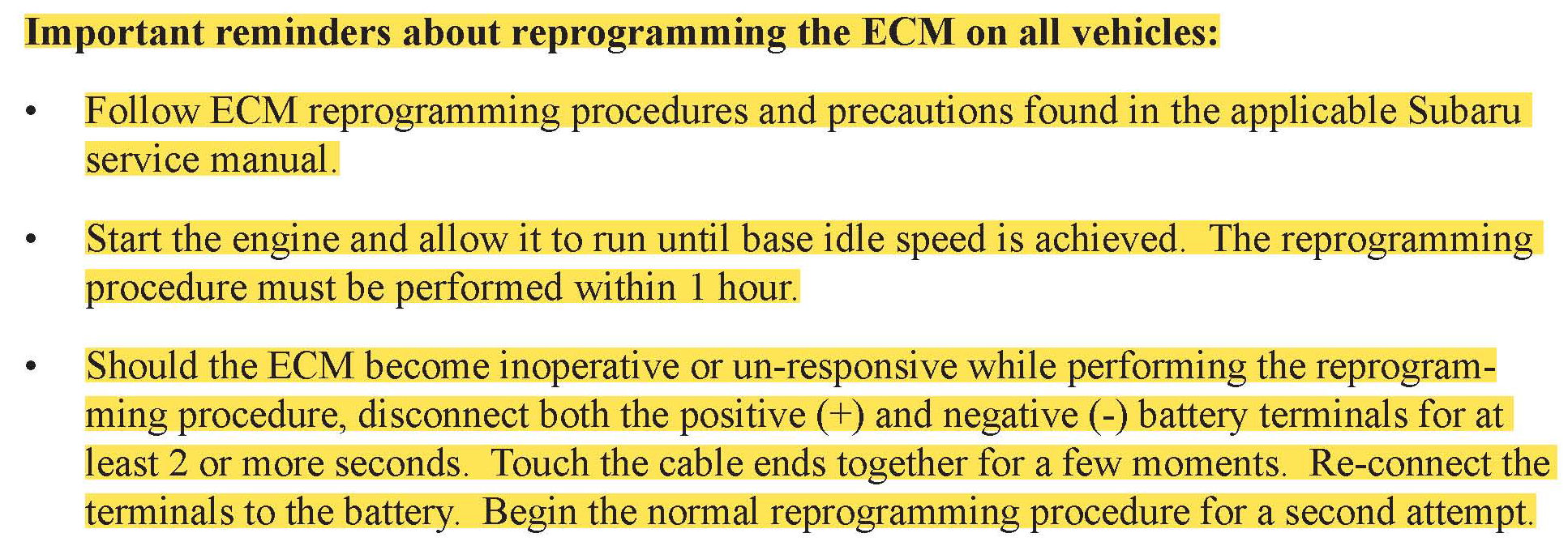 Important reminders about reprogramming the ECM on all vehicles: