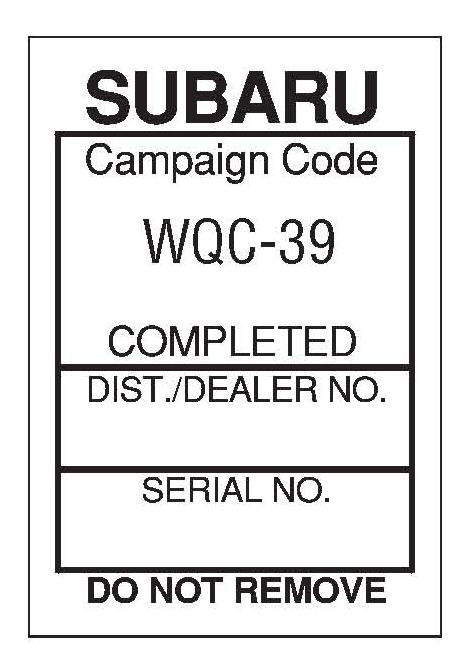 Additional labels are available through the Subaru Claims Helpline.