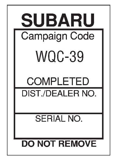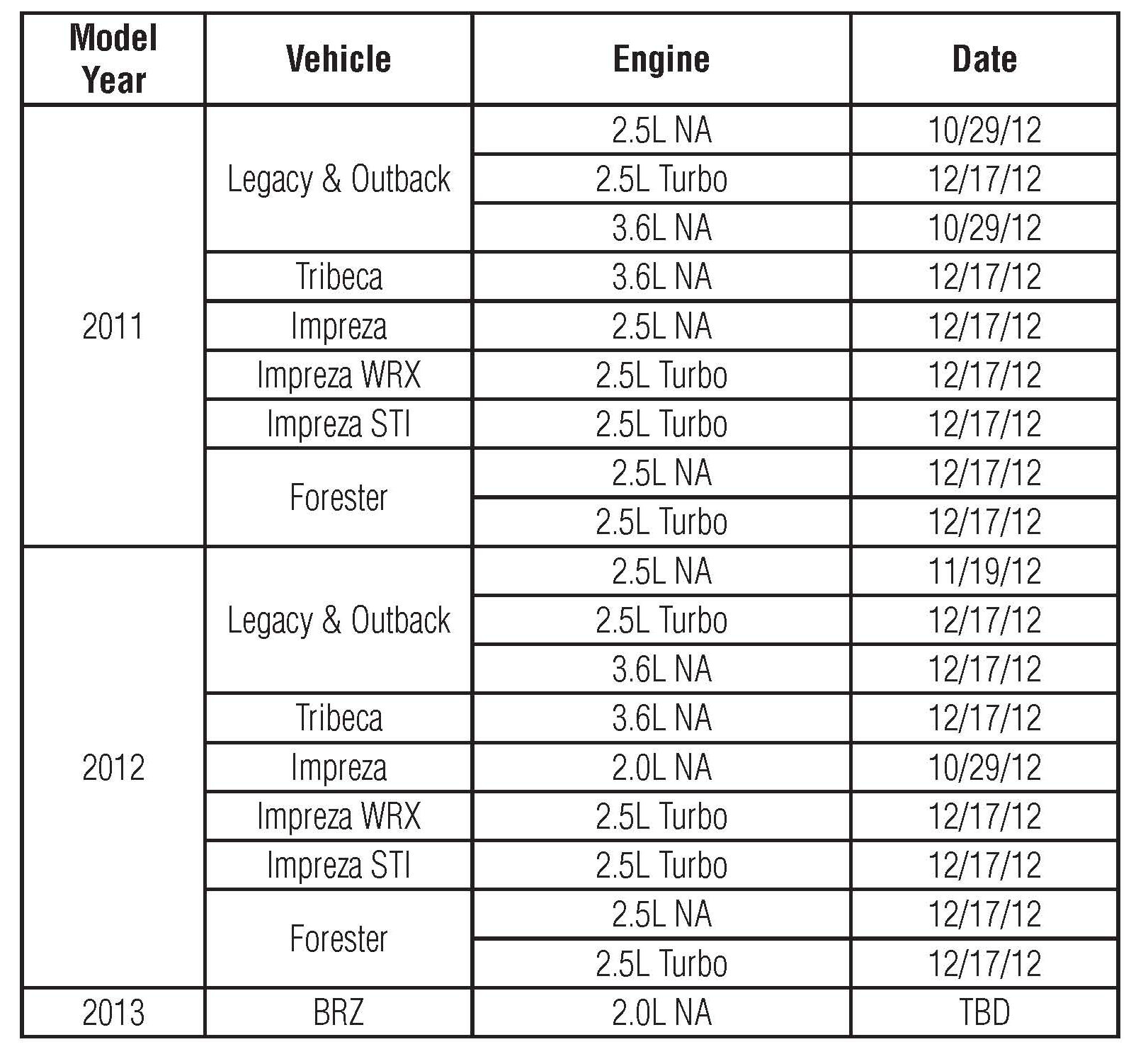 Affected vehicles are identified in the VIN range chart below. NOTE: Not all vehicles in the VIN ranges are affected. Prior to performing repairs, confirm coverage by using the Vehicle Coverage Inquiry function at Subarunet.com.