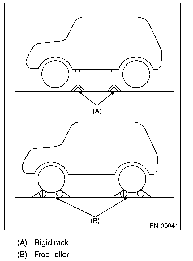 2. Lift up the vehicle using a garage jack and place it on rigid racks, or drive the vehicle onto free rollers.