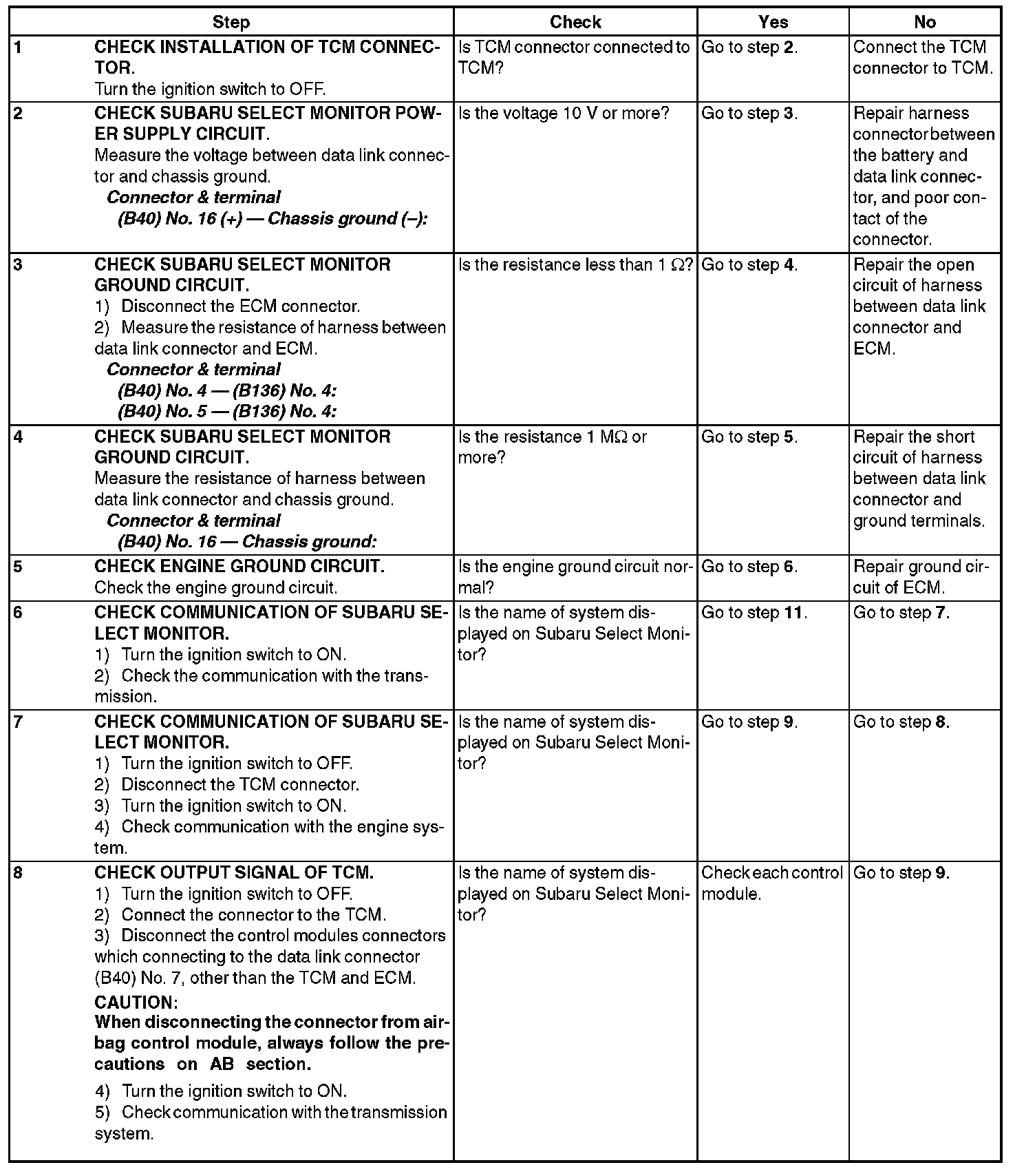 Diagnostic Procedure for Subaru Select Monitor CommunicationCOMMUNICATION FOR INITIALIZING IMPOSSIBLE