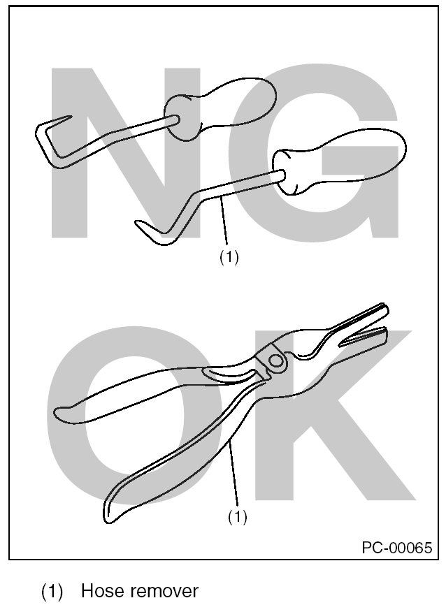 - Perform the operation with the hose removed. If the operation is performed without removing the hose, it may damage inner surface of the hose.