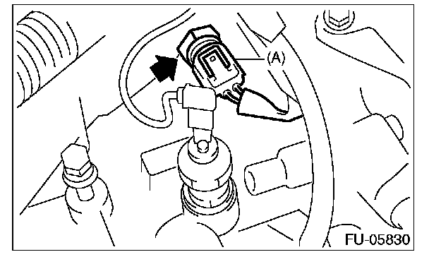 5. Disconnect the connector (A) from the engine coolant temperature sensor, and remove the engine coolant temperature sensor.