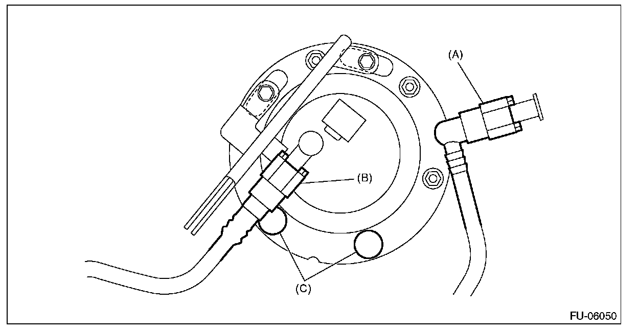 7. Disconnect the quick connector of fuel delivery tube (A) and jet pump tube (B).