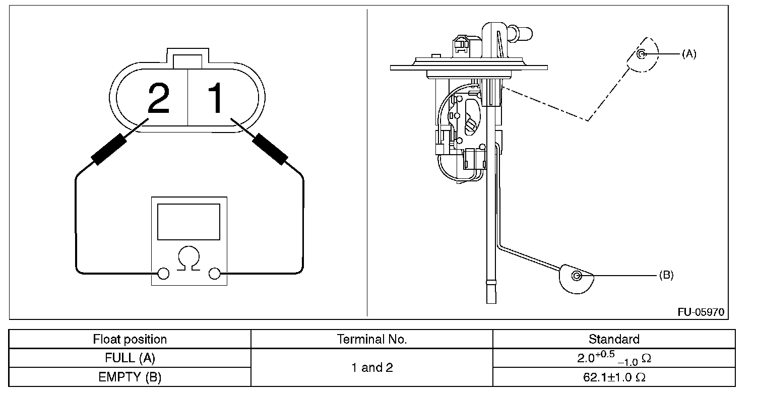 Measure the resistance between fuel sub level sensor terminals.