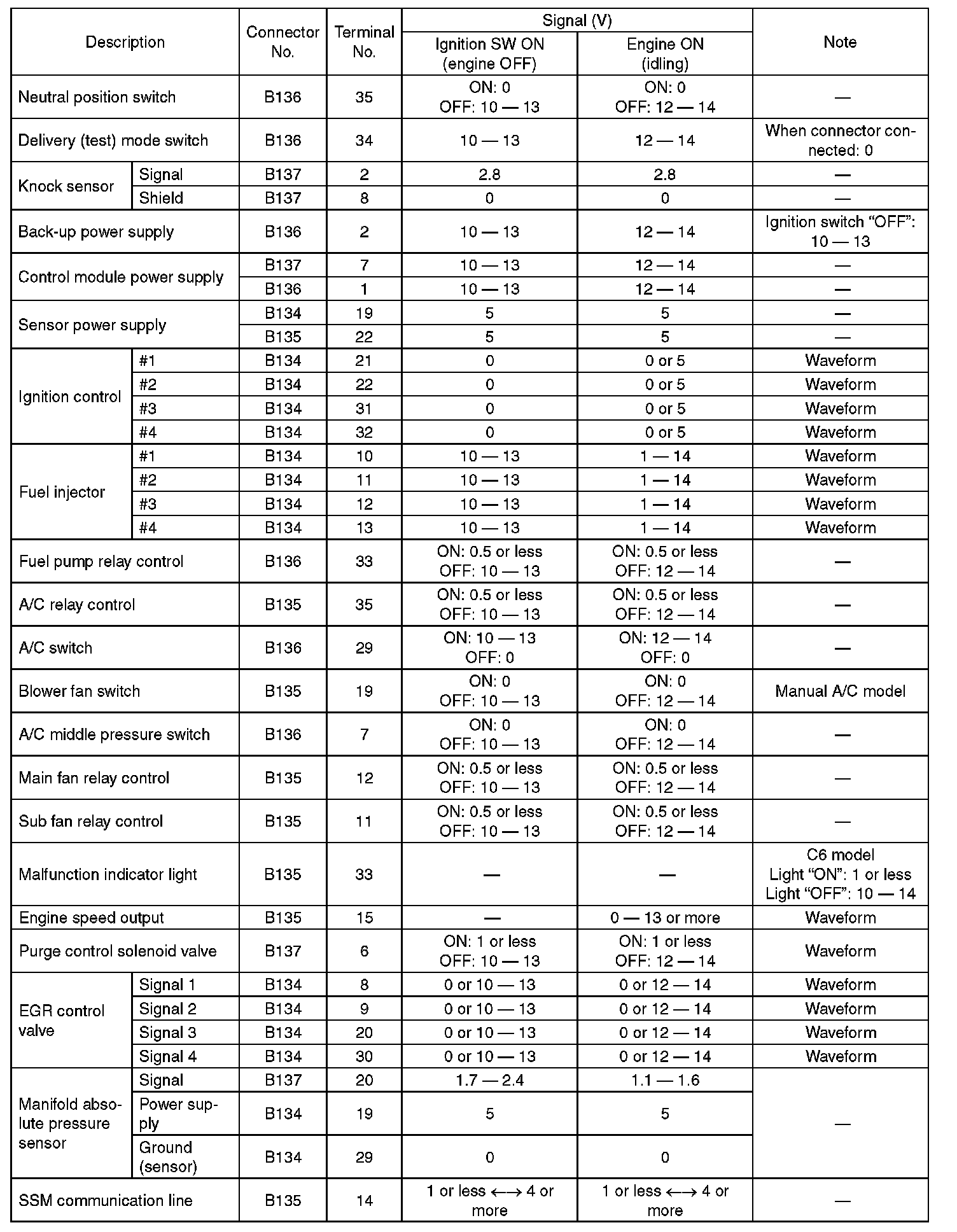 Engine Control Module (ECM) I/O SignalELECTRICAL SPECIFICATION