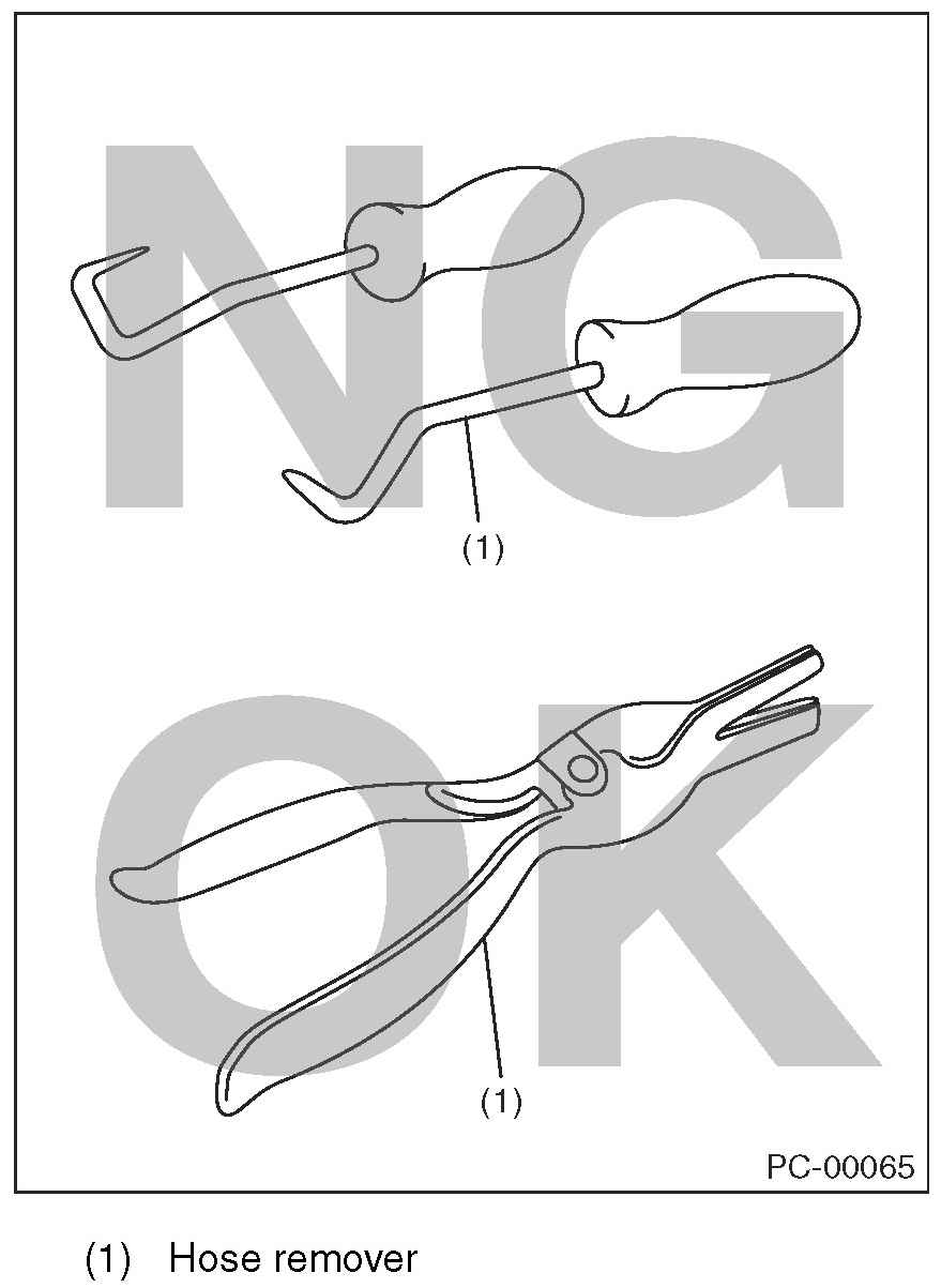 - Perform the operation with the hose removed. If the operation is performed without removing the hose, it may damage inner surface of the hose.