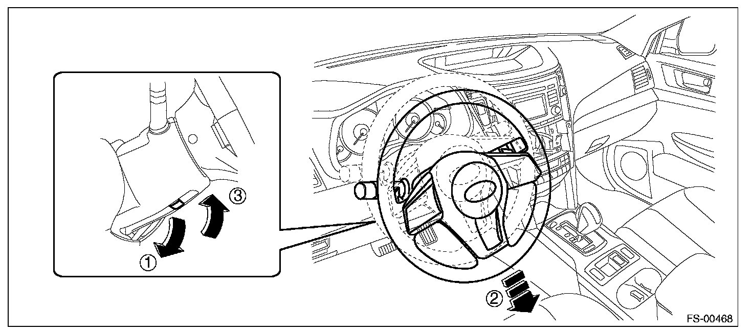 2) Adjust the tilt position of the steering column to the lowest position and lock the tilt lever.