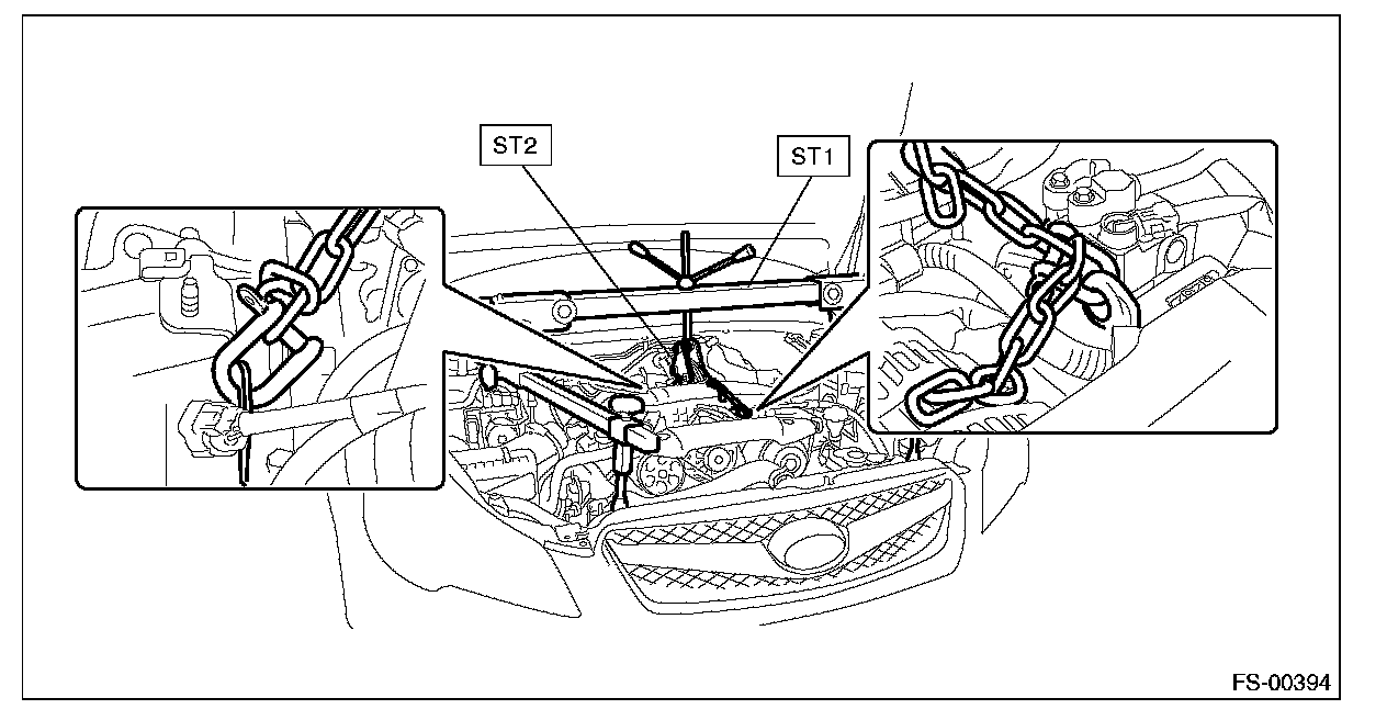 12) Replace the engine hanger installed on the engine with the SUBARU genuine engine hanger (H4 nonturbo model) or ST (H6 model).