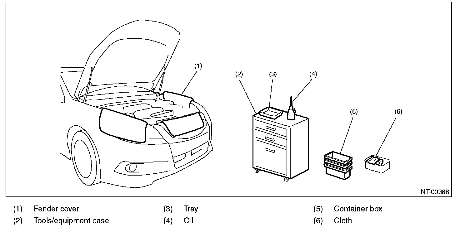 - Before work, cover the vehicle body. (Ex. grille cover, fender cover, seat cover and floor mat cover)